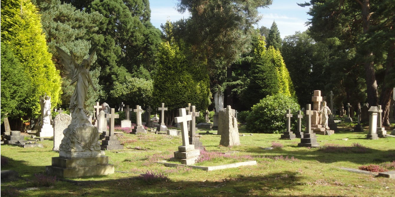 We were disappointed. Brookwood is in no way comparable to an old churchyard. It was built in the mid-nineteenth century to provide burial space for the population of a rapidly expanding London. The lion’s share was buried there and that’s quite a few. According to the internet, almost 250,000 people have been buried at Brookwood since 1854.