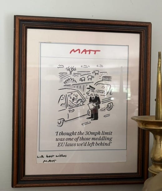 You can buy the drawings. Not the real ones, of course, but a print. I did that on February 1, 2021, the day the United Kingdom officially ceased to be part of the European Union. I don’t think it is Matt’s most brilliant drawing, but I am still glad I could mark the occasion with one of his drawings.