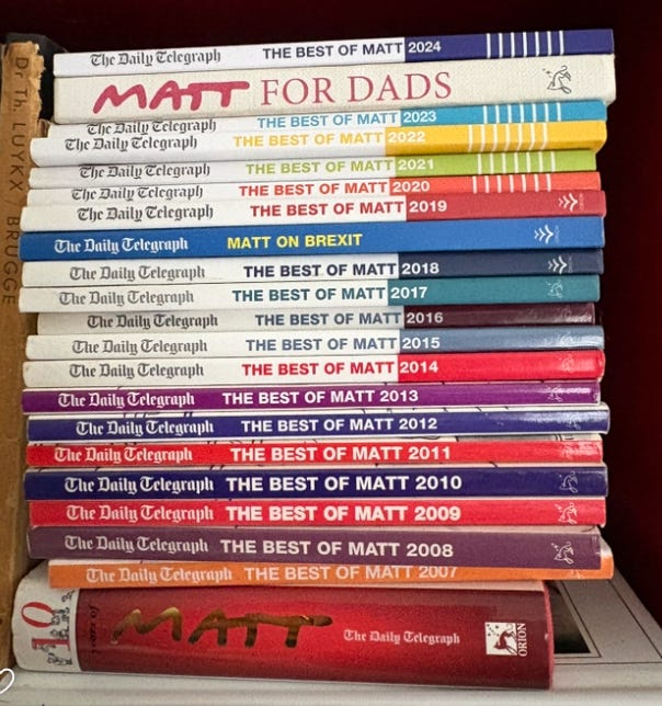 Matt is a phenomenon in this country. He has worked for The Daily Telegraph since 1988. This newspaper has become increasingly annoying over the years. The satirical magazine Private Eye used to refer to it as the Torygraph, because the newspaper is as conservative as can be. Nowadays, however, Private Eye calls it the ‘former newspaper’, which is even deadlier.