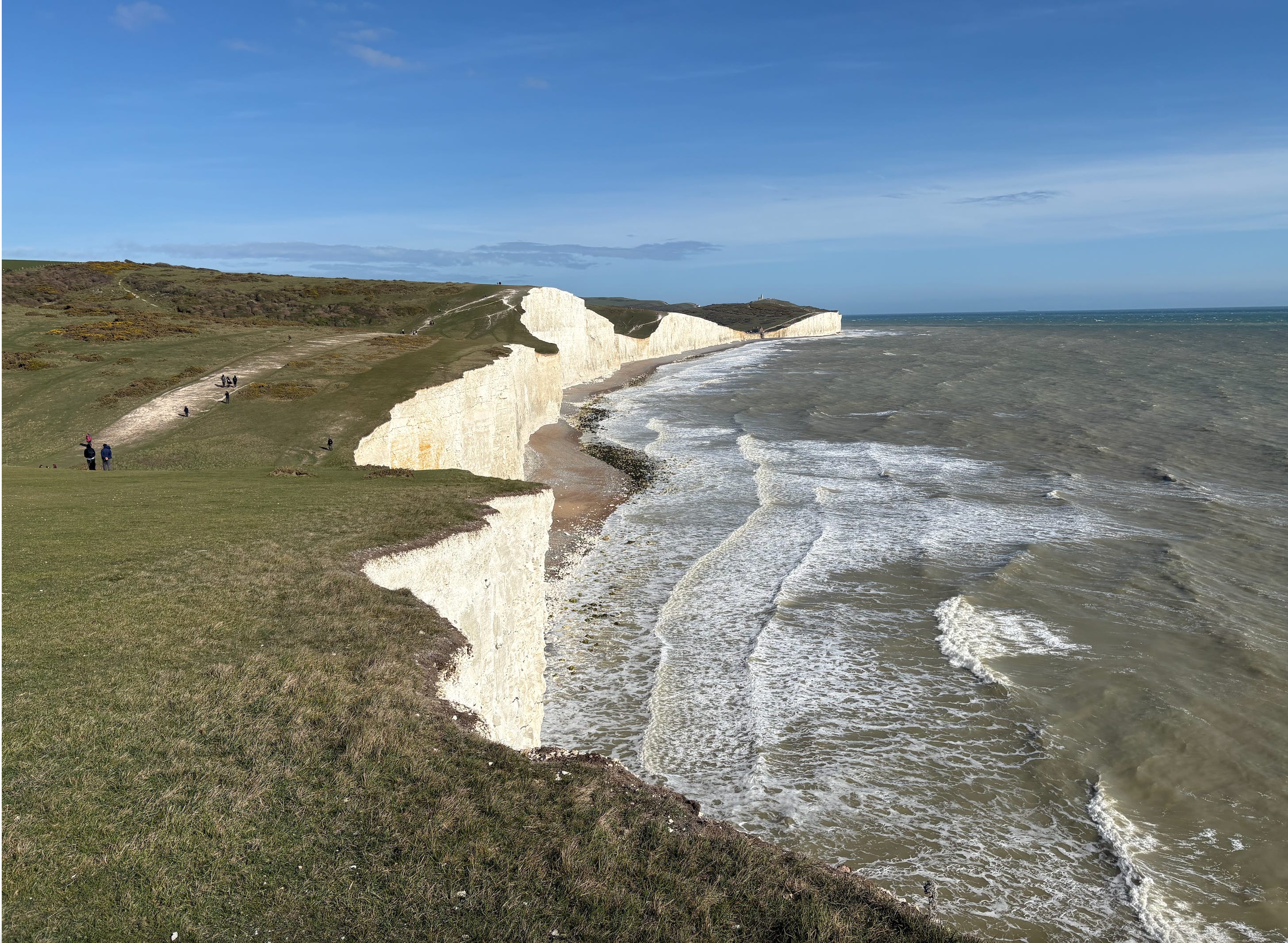 Back to nature. We walked between sheep to reach the coast. Once here, we saw a beautiful view of a few of the Seven Sisters. When you actually walk over them, the seven peaks are less defined. Over the stretch of a few kilometres, we counted at least twenty-seven Sisters. Apparently, some are less important.